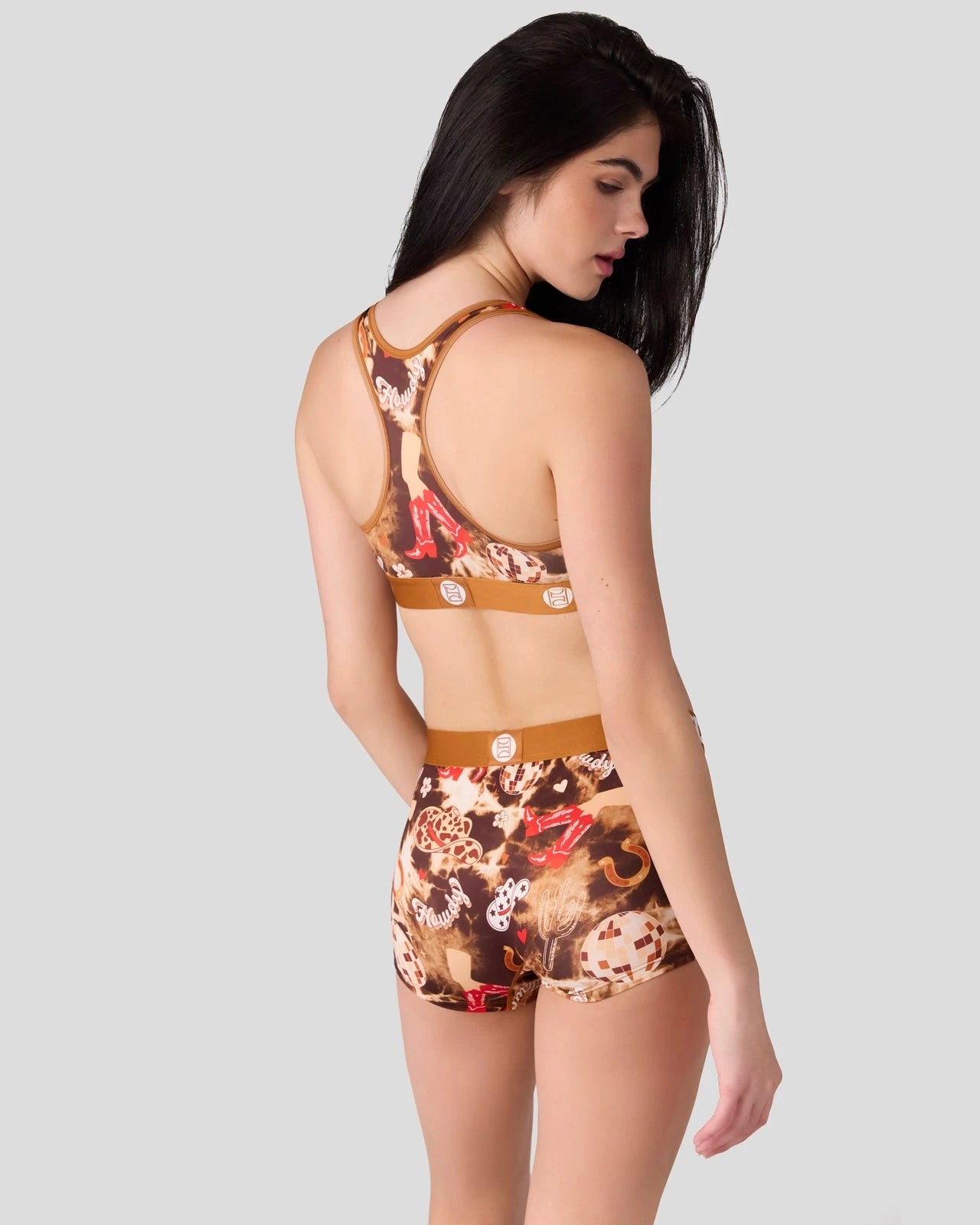 Get ready to boot. scoot. and boogie in this new pair. The Disco Cowgirl Sports Bra is made from a silky poly blend and is breathable yet slightly compressive. bringing you the comfort and support you need for everything you get into.