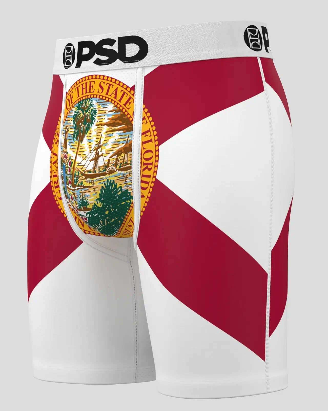 Rep the Sunshine State in this new men’s pair. The Florida briefs feature the state’s iconic flag and include our ultra-comfortable Signature WaistBand. a breathable MicroMesh pouch. and four-way stretch. The PSD 7 Standard Length Briefs won’t roll or ride and were built for everything. from everyday wear to your toughest workouts.
