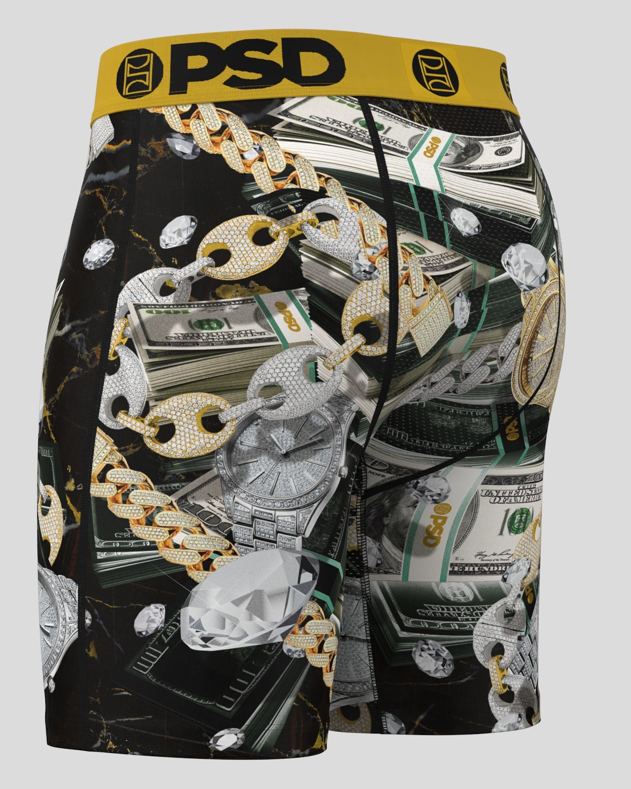 With this new pair. it’s all about the Benjamins. The Icy Benjis briefs include our ultra-comfortable Signature WaistBand. a breathable MicroMesh pouch. and four-way stretch. The PSD 7 Standard Length Briefs won’t roll or ride and were built for everything. from everyday wear to your toughest workouts.