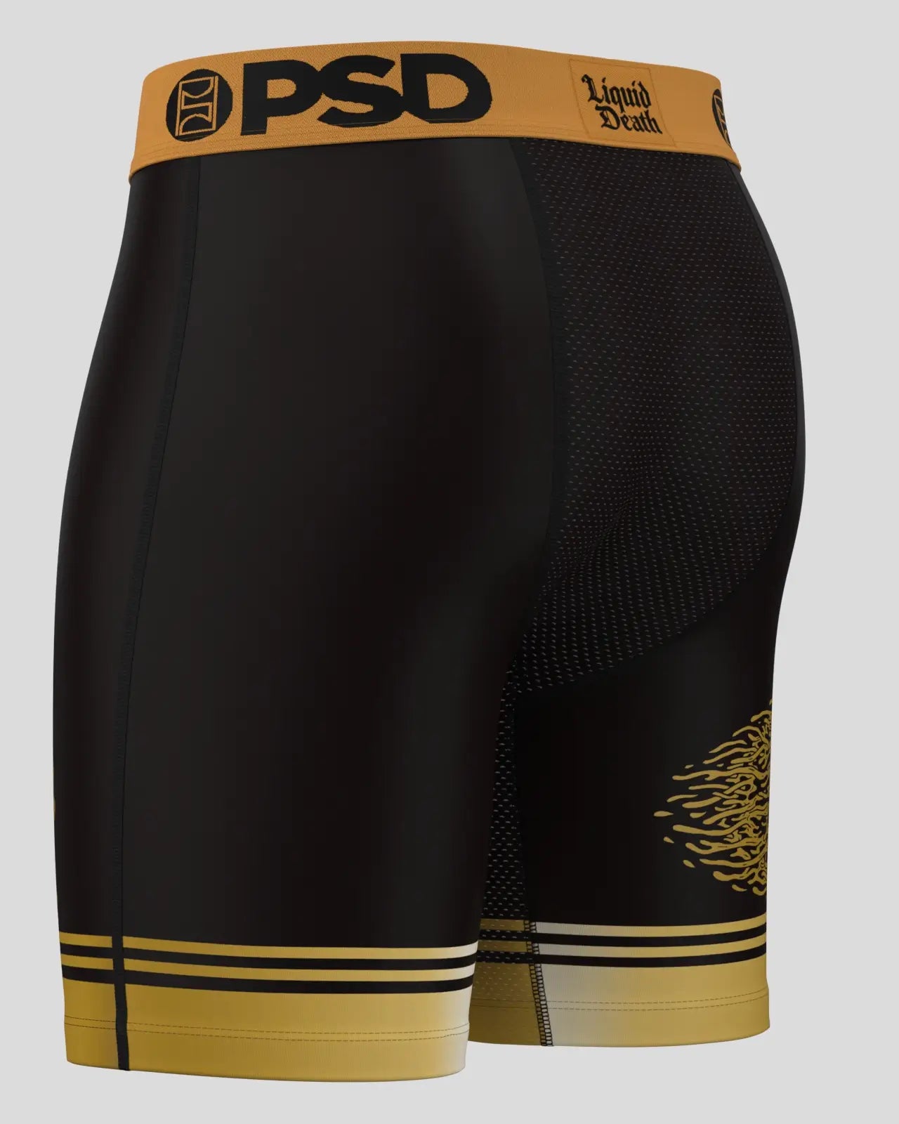 Liquid Death x PSD is here! Featuring our favorite canned water’s iconic logo. the Liquid Death Black briefs include four-way stretch. a breathable MicroMesh pouch. and durable flatlock stitching. The PSD 7 Standard Length briefs were built to hold up for everything from everyday wear to the toughest workouts.