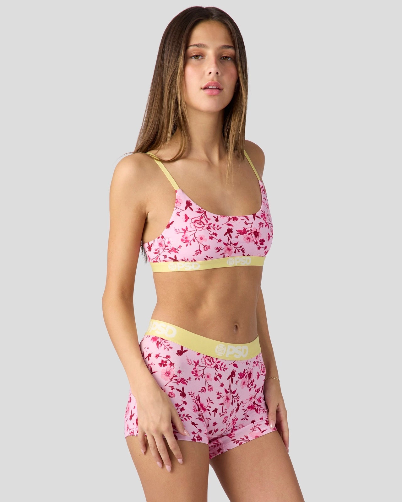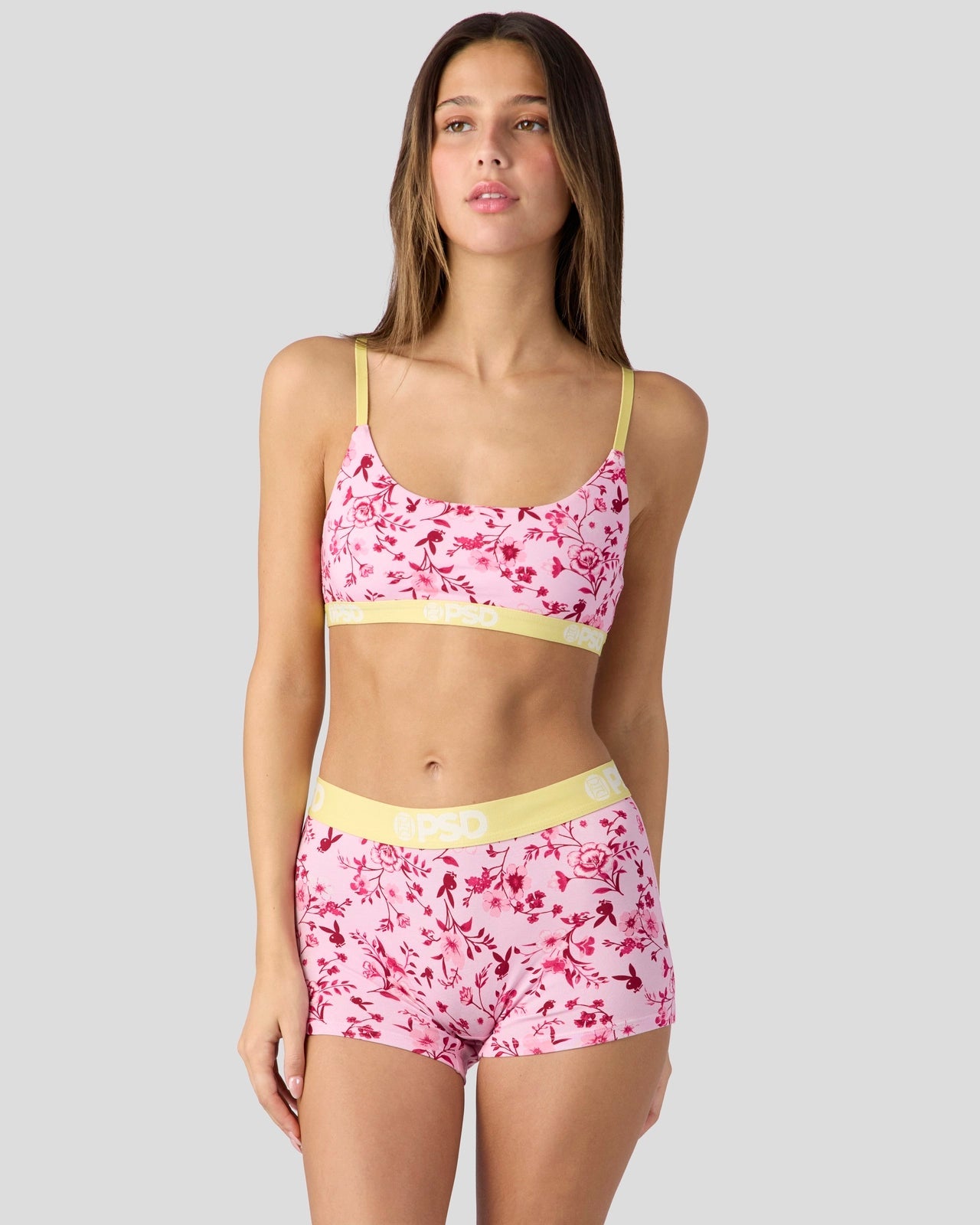 Featuring a ditsy floral print with hidden buddies. don’t miss this new look from Playboy x PSD. Made of a super soft modal blend. the Ditz Modal Scoop Bralette almost feels like you’re not wearing a bra at all. It’s fully lined and features include adjustable straps. a cute scoop neckline. and a soft microfiber band that won’t ride or rub.
