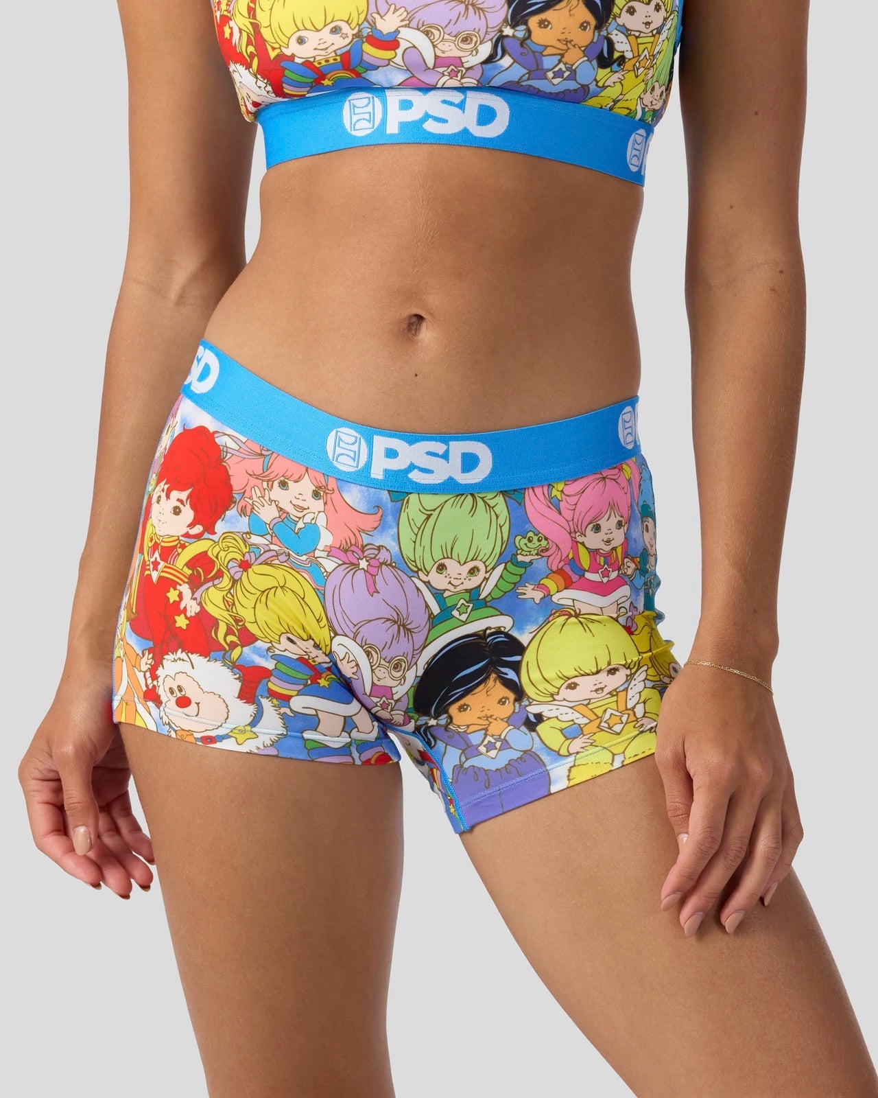 This new style from Rainbow Brite x PSD features Rainbow Brite and her friends. the Color Kids. The RB Squad Boy Short is made from a silky poly blend with a comfortable full coverage. keep-you-in fit. The PSD boy shorts are perfect for everyday wear and working out.