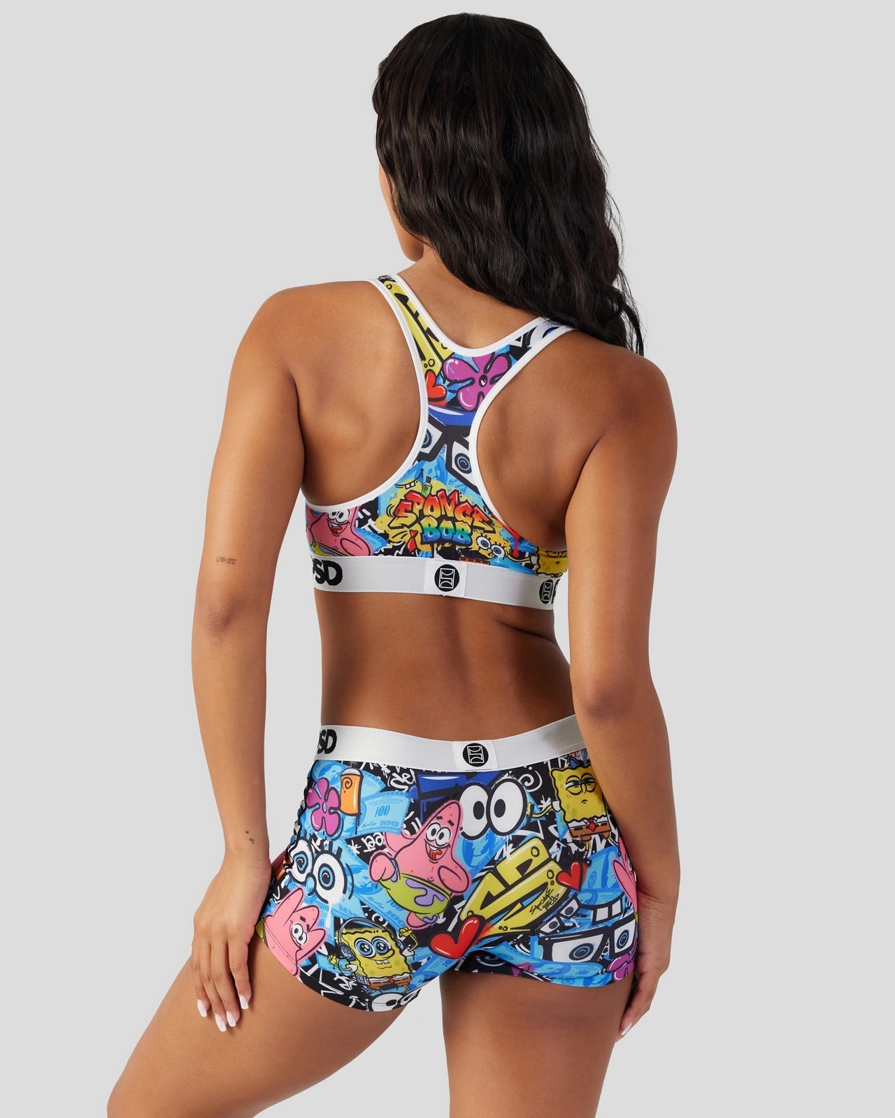 Hit the streets in the latest from SpongeBob SquarePants x PSD. The Street Sports Bra is made from a silky poly blend with a comfortable full coverage. keep-you-in fit. The PSD boy shorts are perfect for everyday wear and working out.